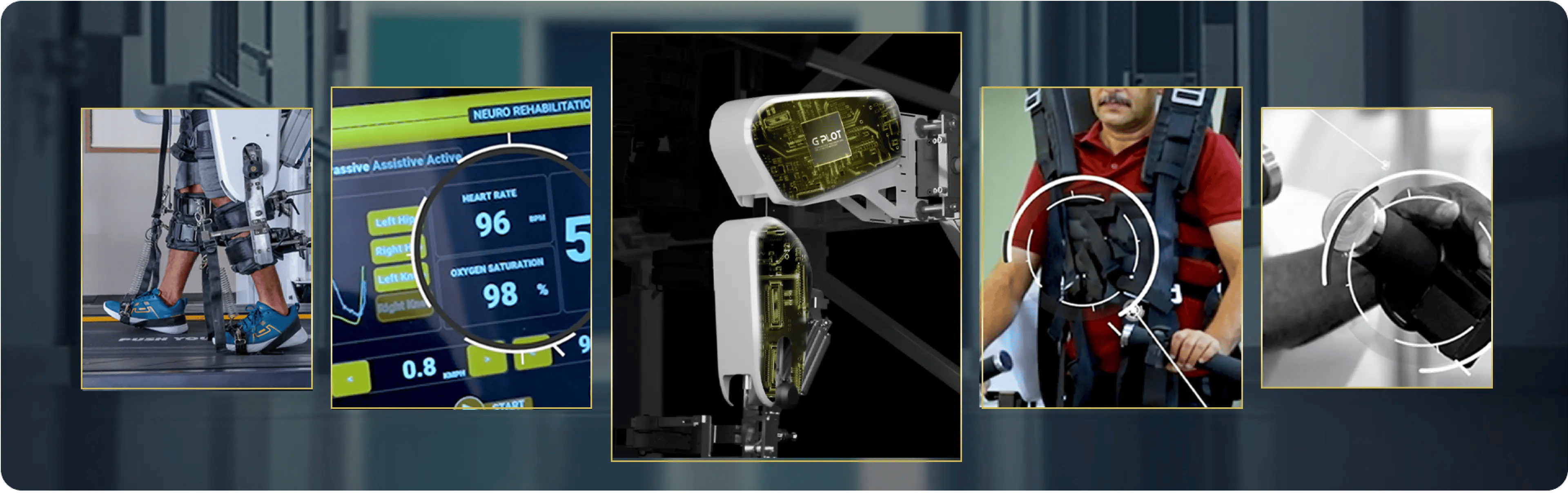 "Advanced robotic gait training technology combines precise exoskeletal support, real-time biometric monitoring, ergonomic harness systems, and intuitive controls."