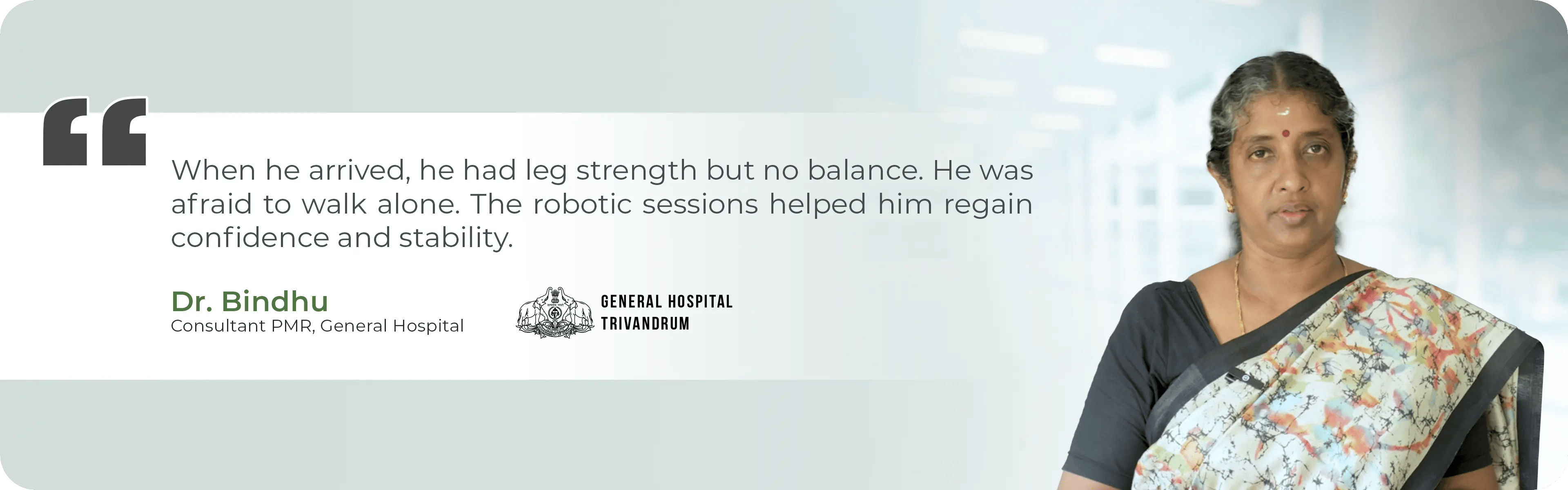"Dr. Bindhu, Consultant PMR at General Hospital Trivandrum, shares insights on robotic gait rehabilitation"
